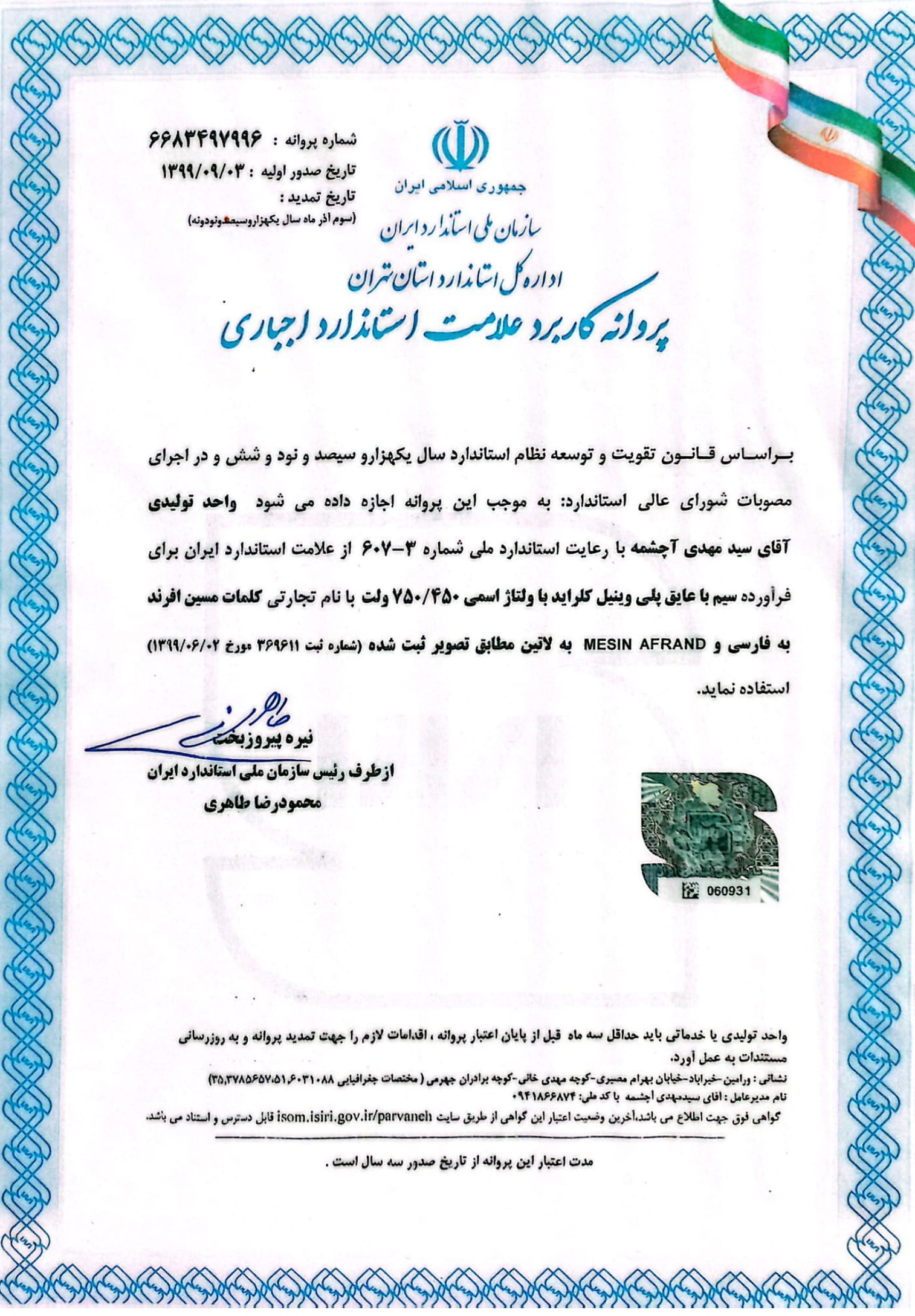 ما در مستر لالهزار، استانداردترین فروشگاه آنلاین سیم و کابل(لوازم برقی ساختمان)، با افتخار تولید و فروش برندهای معتبر مسین افرند(صادراتی) و نگین البرز(اقتصادی)را در اختیار داریم. این برندها با تکیه بر کیفیت بالا، دارای تائیده سازمان نظام مهندسی ساختمان کشور میباشند که استانداردهای ملی ایران، تائیده اصالت کالا، کد ده رقمی فعال و استانداردهای بینالمللی را دریافت کرده.